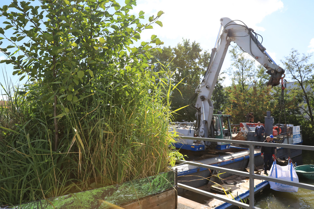 Schon im Mai hatte der Diplomingenieur, der mit spürbar viel Herzblut bei der Sache ist, die Module bepflanzt und monatelang mit großem Engagement das Pflanzenwachstum darauf vorangebracht. Die Pflanzen konnten sich im beigegebenen Substrat aus Sand, Kies und Humus gut verwurzeln und halten jetzt auch starker Strömung stand.