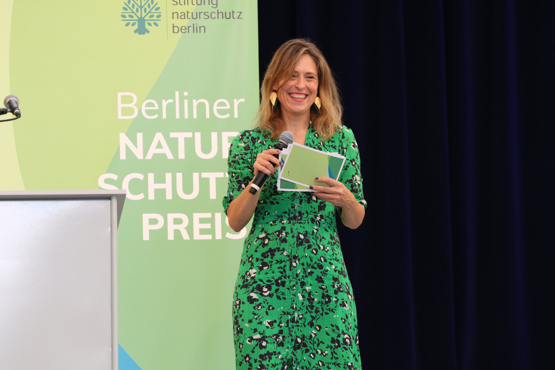 Zur Preisverleihung sprach Ute Bonde, Senatorin für Verkehr, Mobilität, Klimaschutz und Umwelt. Moderiert wurde der Naturschutzpreis von Britta Steffenhagen. Für Matteo Schölzel hielt Anna Bomfleur und für Dr. Achim Förster Dr. Evelyn Kersten die Laudatio. Beate Kitzmann war Laudatorin für den Grünen Campus Malchow.