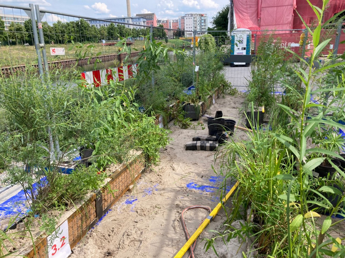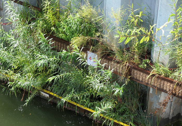 Wir haben das Pilotprojekt am Berlin-Spandauer-Schifffahrtskanal im Bezirk Mitte unterstützt: Nahe der Kieler Brücke wurden sechs jeweils 4,20 Meter lange bepflanzte Kästen montiert, inklusive solarbetriebener Bewässerung. Mit dem Pilotprojekt wurde eine wichtige Grundlage für weitere Begrünungen geschaffen – aufgrund der positiven Ergebnisse werden nun Nachfolge-Projekte gefördert, Informationen dazu unter www.urban-waters.org/de/vertical-wetlands.