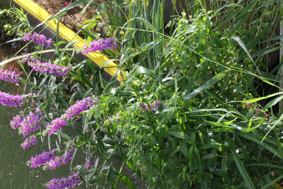 Viele Berliner Uferspundwände sind nicht zu ändern, weil beispielsweise Wege oder Straßen entlang der Gewässer führen. Deshalb hat Ralf Steeg mit den Vertical Wetlands eine Art Baukastensystem entwickelt, das an Spundwände montiert wird. Länge, Breite und Höhe der Module sind variabel und unter Wasser, auf Wasserhöhe oder oberhalb davon zu befestigen. Bepflanzt werden sie mit Stauden und Gehölzen, wie sie auch an natürlichen Ufern vorkommen, beispielsweise Blutweiderich, Sumpfschwertlilie, Ufersegge, Silberweide und Gemeine Waldrebe.