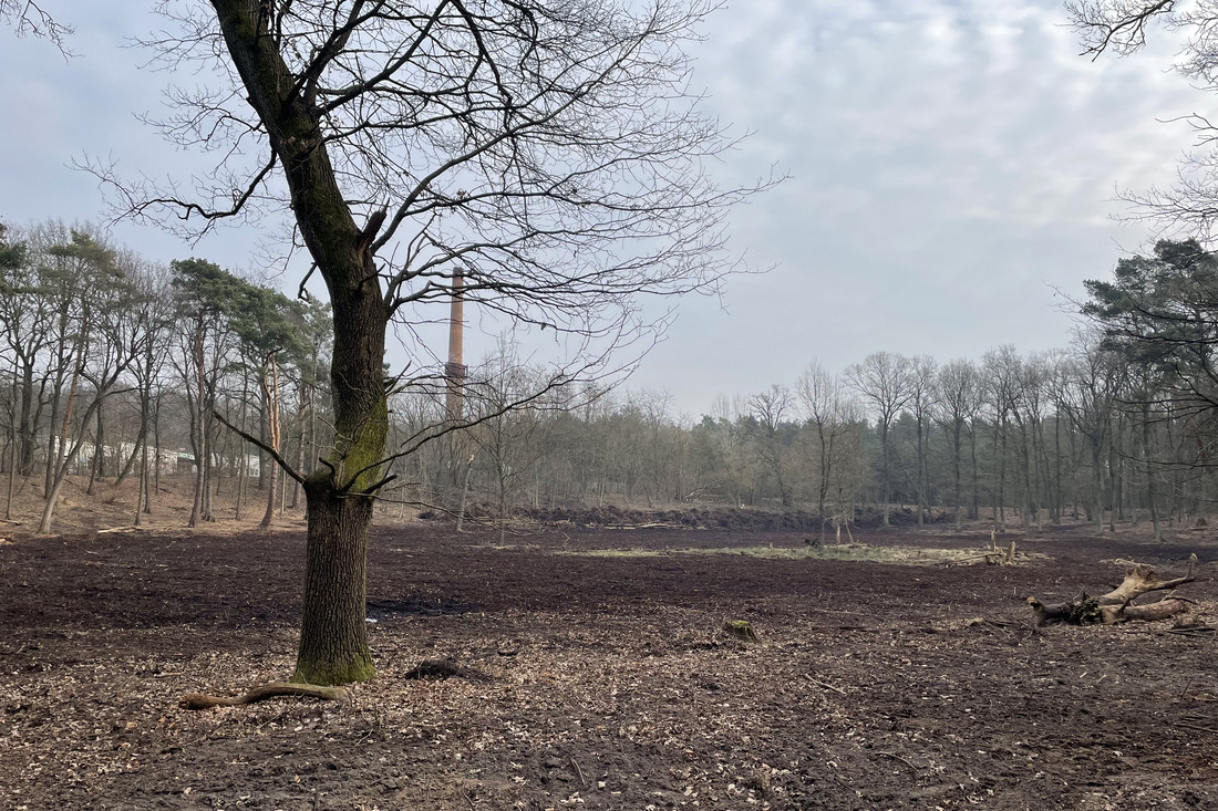 Im vermoorten Kernbereich wurden im Januar und Februar 2025 zunächst alle Gehölze zur Wiederherstellung eines offenen Moores behutsam entnommen. Wegen der geringen Tragfähigkeit des Moorbodens und um Schädigungen an ihm zu vermeiden, wurden besondere Kettenfahrzeuge für diese Arbeiten eingesetzt. In Teilbereichen mit Resten typischer Moorvegetation wurde ohne Maschineneinsatz gearbeitet.