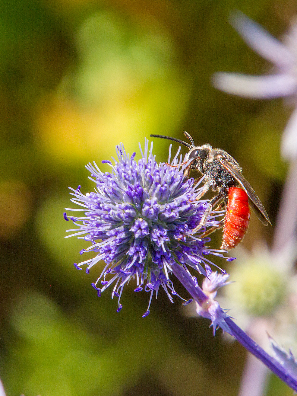 - Honigbienen durchstöbern bei Bedarf einen sehr viel größeren Umkreis (über 5 km), als die ortstreuen Wildbienen (wenige hundert Meter).