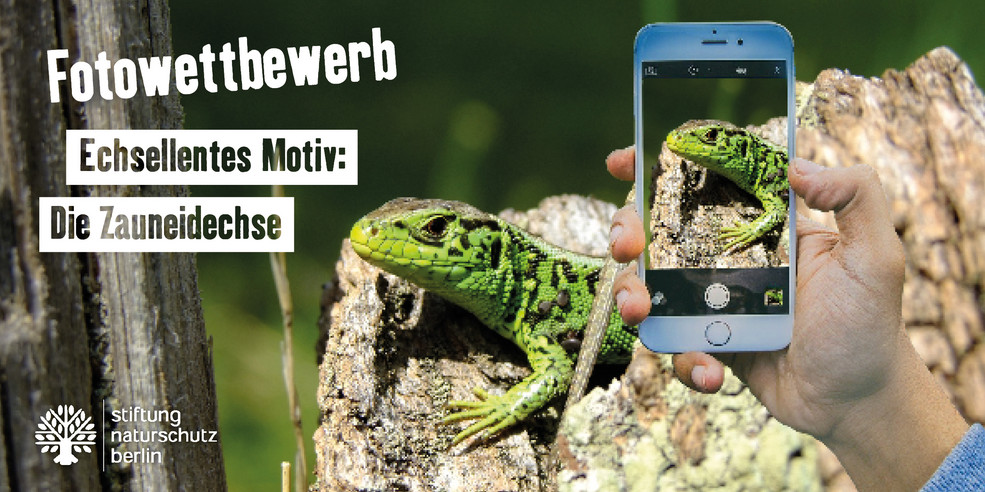 Alle Natur- und Fotobegeisterten können am Fotowettbewerb „Reptil im Fokus“ teilnehmen und bis zum 31. August 2021 ihre Zauneidechsen-Bilder unter www.artenfinderberlin.de/fotowettbewerb2021 hochladen. Dabei ist es egal, ob die Zauneidechse mit dem Smartphone oder der Profikamera, im eigenen Garten oder in der Stadtnatur, vor einem Jahr oder heute aufgenommen wurde. Wichtig ist nur: es ist eine Berliner Zauneidechse und der Ort der Aufnahme wird uns mitgeteilt.