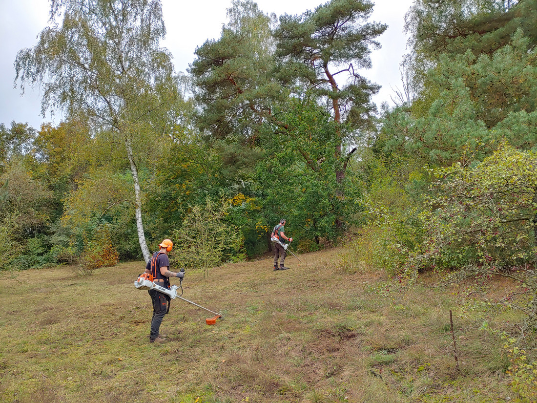 In Berlin gibt es rund 1.500 Wildpflanzenarten, von denen über 700 auf der Roten Liste der bedrohten Arten stehen. Diese Pflanzen spielen eine entscheidende Rolle für die Artenvielfalt und den Erhalt wertvoller Lebensräume. Magerrasen wie in der Lieper Bucht gehören zu den artenreichsten Grünlandtypen und beherbergen viele dieser Wildpflanzenarten. Im Frühjahr 2024 brachten die Koordinierungsstelle Florenschutz und die Stadtnatur-Ranger auf der Fläche an der Havel Kartäuser-Nelken und das Ohrlöffel-Leimkraut aus. Beim heutigen Pflegeeinsatz befreiten sie den Haupthang von Rosen und anderen Gehölzen und mähten ihn anschließend. Ziel war es, offene Stellen zu schaffen, auf denen die Wildpflanzen wieder genug Licht zum Wachsen haben. Zum Einsatz kamen dabei Spaten, Sensen und Freischneider der Berliner Forsten und viele helfende Hände der Freiwilligen des Botanischen Vereins.